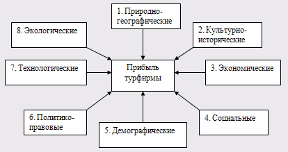 К числу важнейших внешних факторов, влияющих на развитие туризма, следовательно, и на увеличение или уменьшение прибыли туристских организаций, относятся: