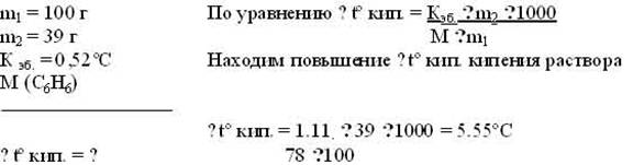 В 100 г. этилового спирта растворено 39г. бензола С6Н6, рассчитайте повышение температуры кипения этого раствора, если эбуллиоскопическая константа спирта равна 1,11ºС.