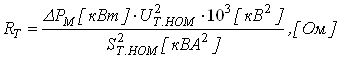 Активний опір обмотокдвообмоточного трансформатора визначають по відомих втратах потужності в міді (у обмотках) трансформатора ΔРМ кВт при його номінальному навантаженні: