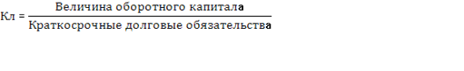 Для того чтобы оптимизировать кредиторскую задолженность необходимо определить ее "плановые" характеристики. Наиболее часто используемый коэффициент, связанный с оценкой кредиторской задолженности предприятия - это коэффициент ликвидности, который рассчитывается как отношение величины оборотного капитала к краткосрочным долговым обязательствам.