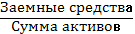 Коэффициент зависимости предприятия от кредиторской задолженности. Рассчитывается как отношение суммы заемных средств к общей сумме активов предприятия. Этот коэффициент дает представление о том, на сколько активы предприятия сформированы за счет кредиторов.