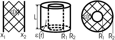 Рассмотрим для примера симметричный (ε = ε(r)) цилиндрический конденсатор. В нем