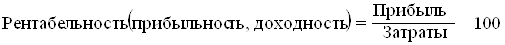 Третий -преобладание потребления над накоплением. Значительная часть чистой прибыли идет в фонд потребления для выплаты премий и вознаграждения персоналу в соответствии с коллективным договором, часть средств идет на накопление (приобретение основных фондов и прирост оборотных средств), минимальная величина - на выплату дивидендов собственникам. Этот подход ведет к стагнации предприятия и сокращению инвестиций. Низкая доходность собственного капитала не привлекает инвесторов. Зачастую такая ситуация возникает на государственных предприятиях или в акционерных обществах с контрольным пакетом акций у государства. Рентабельность как понятие характеризует экономическую эффективность деятельности предприятия. Рентабельность как показатель - это относительная величина, в числителе которой представлена прибыль, а в знаменателе - затраты. Рентабельность оценивается в процентах. Модель вычисления уровня рентабельности выглядит следующим образом (1. c.378):