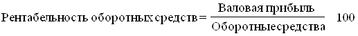 Поскольку оборотные средства предприятия - это та часть активов, которые непосредственно и практически ежедневно используются в процессе деятельности предприятия, при оценке эффективности их использования целесообразно сопоставить валовую прибыль со значением оборотных средств. Расчет данного показателя производится по формуле: