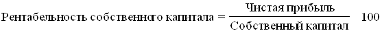 Рентабельность собственного капитала характеризует эффективность использования только собственных источников финансирования предприятия. Данный показатель имеет общепринятую аббревиатуру ROE от английского выражения Return on Eguity. При расчете этого показателя используется чистая прибыль предприятия в сочетании с величиной собственного капитала предприятия. Расчет производится следующим образом: