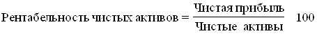 Рентабельность чистых активоврассчитывается путем сопоставления чистой прибыли предприятия с активами предприятия. Смысл этого показателя состоит в анализе эффективности использования капитала компании. Под капиталом здесь понимается указанная в балансе сумма собственного капитала и долгосрочных обязательств. Для расчета данного показателя используется формула: