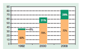 Picture 2.1 - Number of TNCs from developed countries and from developing and transition economies, 1992, 2000 and 2008
