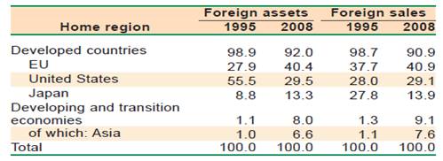 Table 2.1 - Foreign activities of the top 5,000 TNCs, by home region/country, 1995 and 2008
