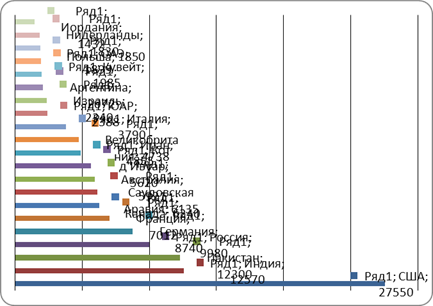 Если анализировать по числу международных мигрантов и их доли в общей численности населения, можно констатировать усиление различий между странами после 1965 г. и возрастание количества стран, принимающих значительное число мигрантов (свыше 300 тыс. человек) или имеющих значительную долю мигрантов во всем населении (свыше 15%). В 1965 г. в 41 стране численность мигрантов превышала 309 тыс. человек, что было выше среднестатистического уровня. К 1990 г. число стран с таким количеством мигрантов увеличилось до 63, но только в 42 странах, принимающих свыше 585 тыс. мигрантов каждая, был превзойден средний статистический уровень. Подобным же образом в 1965 г. в 34 странах был превышен среднестатистический уровень по доле международных мигрантов в населении (15%). В 1990 г. число соответствующих стран увеличилось до 52, при этом только 39 из них являлись новыми странами, пополнившими группу; средний уровень населения, рожденного за границей, в которых поднялся до 22,5%. В 1999 г. данный показатель еще более возрос, составив около 27%. 21 страна с числом мигрантов более 1,4 млн. человек представлены на диаграмме 1, из которой, в частности, видно, что по-прежнему лидирующее место в мире по числу мигрантов занимают США. Что касается Индии и Пакистана, то значительная численность мигрантов — это вынужденные мигранты, в то же время эти две страны сами являются крупнейшими поставщиками иностранной рабочей силы в более развитые государства. Обращает на себя внимание ведущая позиция России, цифра по которой слагается из 6,2 млн. официально въехавших из стран ближнего зарубежья за 1992—2000 гг., 1,2 млн. беженцев и более 2 млн. официально незарегистрированных.