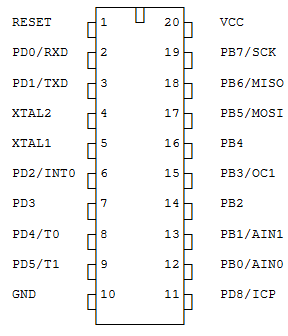 Рис. 2.1 – Цоколёвка и название выводов микроконтроллера