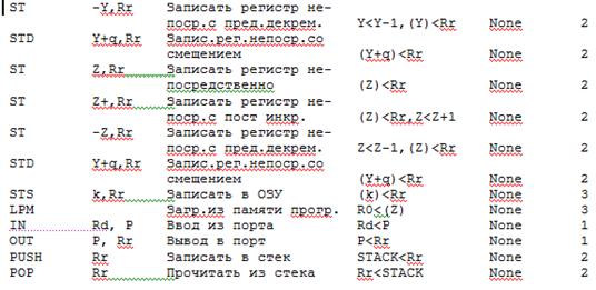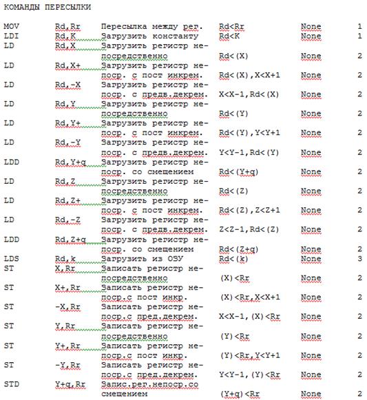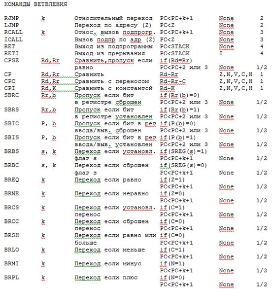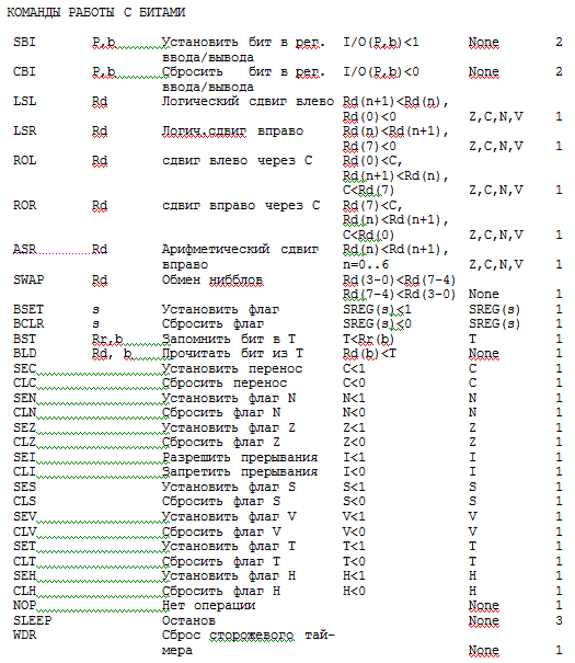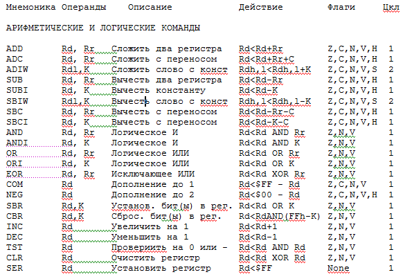 Кроме этого AT90S2313 имеет очень удобную в использовании систему команд, которая приведена ниже.
