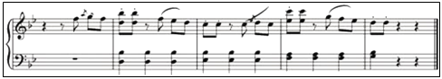 Наконец, аккомпанемент, по своему характеру близок к прозрачной, очень экономной, но не сухой, партии оперного оркестра Чимарозы. Импонирует экономность музыкальных средств, с помощью котрых композитор достигает интересных эффектов
