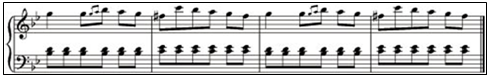 В Репризе в E-dur и в D-dur разрабатывается новый музыкальный материал, близкий Главной партии