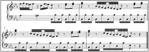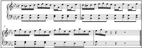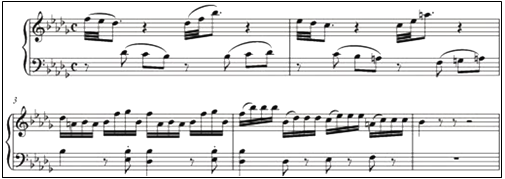 Реприза начинается с новой мелодии в c-moll (одноимённой тональности)