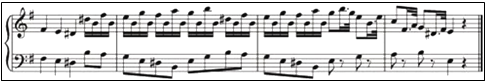 Для итальянской клавирной музыки 18 века также характерна насыщенность большим количеством цезур. Не только на гранях разделов. Но и на гранях партий. И в самих партиях. Тематизм содержит черты множества кадансовых замыканий: он формируется из кадансов и типичных простейших гармонических формул