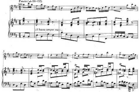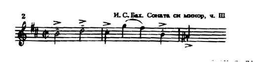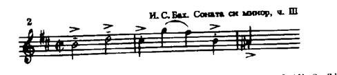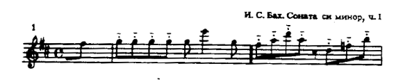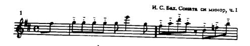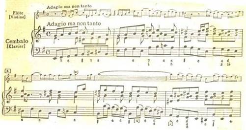 Одной из лучших сонат Баха для флейты является соната ми минор. Первая часть,Adagio ma non tanto,- неторопливая, глубокая по своему эмоциональному содержанию музыка, требующая от исполнителя зрелого мастерства, понимания стилевых особенностей творчества композитора. Развитие тематического материала, сопровождаемое динамическим нарастанием, образует как бы четыре большие звуковые волны, следующие одна за другой.