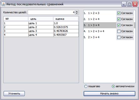 Общим недостатком показателей, получаемых на основе суммирования баллов, является то, что недостаток качества по одному из них можно компенсировать за счет других, получая один и тот же результат при различной значимости факторов. Поэтому для повышения надежности оценок, значение имеет выявление связей и установление зависимостей между всеми значимыми факторами. Установление таких зависимостей возможно методом последовательных сравнений (У. Черчмен, Р. Акоф).