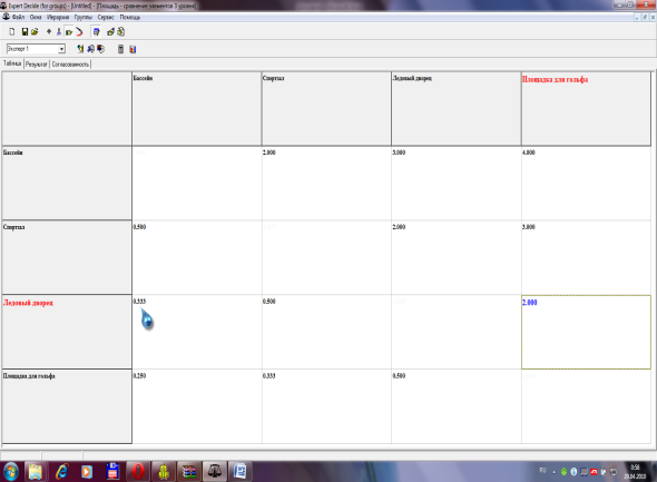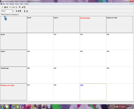 Сравниваем элементы второго уровня для установления приоритета каждого критериев.