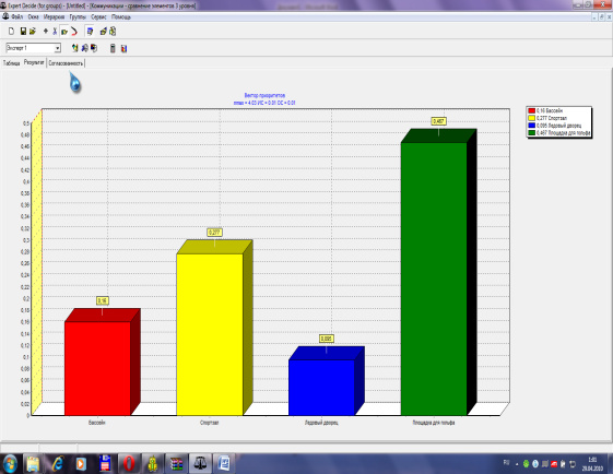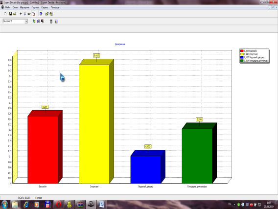 В результате сравнения объектов по критерию коммуникации, можно придти к выводу, что наиболее выгодно строительство площадки для гольфа.