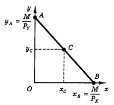Линия, описываемая уравнением (3), носит название бюджетной линии.