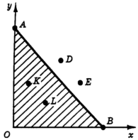 На графике (рис. 5) множество доступных нашему потребителю товарных наборов отображается треугольником ОАВ.