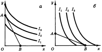 В этом случае при движении вдоль кривой безразличия норма замещения изменяется от нуля до бесконечности, и каково бы ни было соотношение цен PX/PY, точка равновесия будет отвечать условию (8).