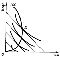 Рис. 3. Линия доход-потребление (чай - низшее благо).