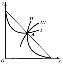 Рис. 7. Кривые безразличия имеют общие точки с осями координат