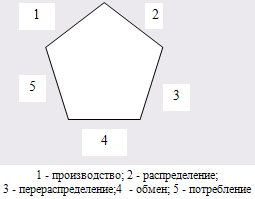 С воспроизводственных позиций можно дать такое определение понятия национальной экономики: это сфера, в которой организуются процессы производства, распределения, перераспределения, обмена и потребления в рамках национального государства, т.е. сфера, ограниченная рамками государственности, где организуются воспроизводственные процессы. Схематично сформулированное понятие можно отобразить следующим образом (рис. 1).
