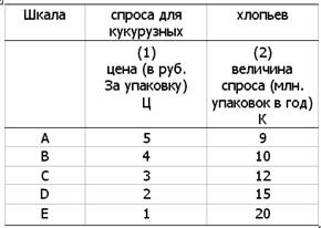 По каждой рыночной цене потребители захотят купить определенное количество кукурузных хлопьев. С уменьшением цены на хлопья будет возрастать величина спроса (2).