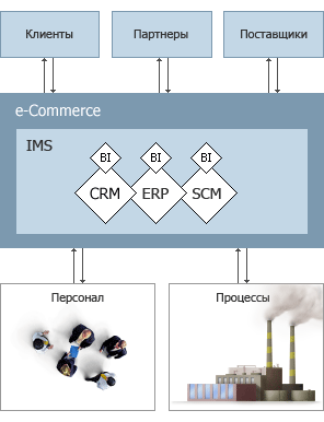 Корпоративная информационная система - это не совокупность программ автоматизации бизнес-процессов компании (управления производством, ресурсами и компанией), это сквозная интегрированная автоматизированная система, в которой каждому отдельному модулю системы (отвечающему за свой бизнес-процесс) в реальном времени (или близком к реальному) доступна вся необходимая информация, вырабатываемая другими модулями (без дополнительного и , уж тем более, двойного ввода информации).