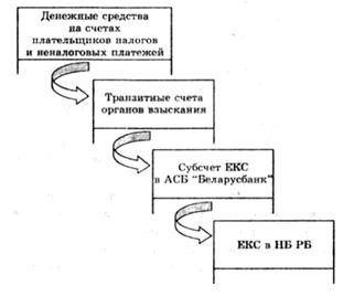 – зачисление доходов, включая доходы государственных целевых бюджетных фондов, на единый казначейский счет (ЕКС) Главного государственного казначейства, открытый в Национальном банке Республики Беларусь;