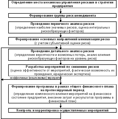 Сущность каждого этапа управления рисками предполагает применение различных методов. Данные методы систематизируются в поэтапный процесс реализации риск-менеджмента на предприятии.