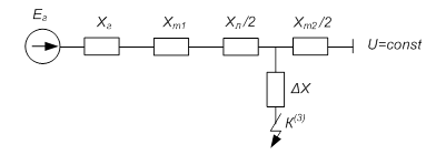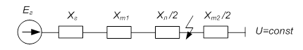 - мощность, вырабатываемая генератором, считается изменяющейся мгновенно при изменении в схеме электропередачи в следствии КЗ или коммутации;
