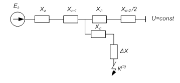 3) При наличии АРВ СД: ХГ = 0;ЕГ = UГ – напряжение генератора.