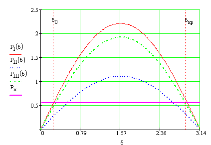 По результатам вычислений строим характеристики нормального PI, аварийного PII и послеаварийного PIII режимов.
