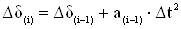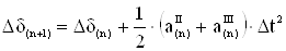 и определяется приращение угла за второй интервал времени: