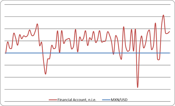 Финансовый счет Мексики отличается в основном положительным сальдом. Однако в 1994-1995гг. кризиса наблюдался резкий отток капитала. Во второй половине 90-х гг. политика финансовой стабилизации и ускорившихся структурных преобразований в Мексике стимулировала приток в страну прямых и портфельных инвестиций. Ежегодно в экономику Мексики вливалось до 12 млрд. долл. прямых инвестиций, а доля Мексики во всей сумме иностранных инвестиций, приходившейся на страны Латинской Америки, превысила 40%. Также наблюдался дефицит в 2006г., что однако не отразилось на ваютном курсе. Таким образом, рассматривая динамику финансового счета и валютного курса, можно сделать вывод, что исследование движения капитала не может объяснить изменение динамики валютного курса для Мексики.