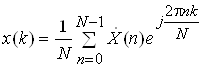 Перехід від дискретного спектра до часових відліків сигналу здійснюється за допомогою зворотного дискретного перетворення Фур'є (ЗДПФ):