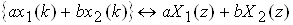 Z-перетворення є лінійною комбінацією відліків, тому воно підлягає принципу суперпозиції: якщо