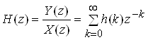 Функція H(z), що дорівнює відношенню z‑перетворень вихідного та вхідного сигналів і є z‑перетворенням імпульсної характеристики системи, називається функцією передачі або системною функцією дискретної системи: