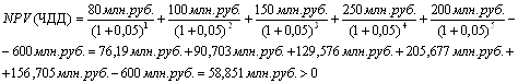 1. Чистый дисконтированный доход, млн. руб. 2. Индекс доходности 3. Дисконтированный срок окупаемости, лет | 58,851 1,098 0,91 |