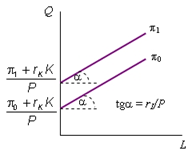 Каждая точка изопрофиты указывает на такое сочетание Q, L, которое обеспечивает заданный объем прибыли. Каждому объему прибыли соответствует своя изопрофита (рисунок 2).