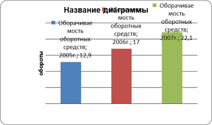 Эффективность использования оборотных средств также выросла. Оборачиваемость оборотных средств ускорилась за 2005-2007гг. на 9,2 оборота (рис. 7).