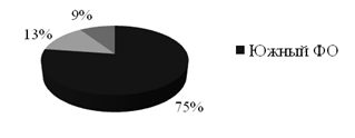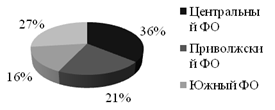 Рис. 1.4 Производство вина по Федеральным округам России, в %