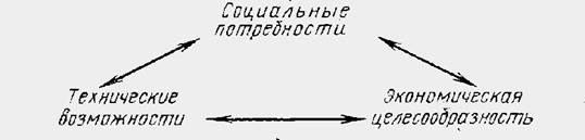 Вершины этого «причинного, треугольника» идентифицируют движущие силы развития производства, его ребра — обоюдные связи между ними. Поэтому задачи планирования и прогнозирования нельзя рассматривать изолированно. В процессе прогнозирования и разработки плана обязательно производится анализ взаимодействия целей, способов и технических средств их достижения, ресурсов, необходимых для их реализации, и определяются по принятым критериям эффективности оптимальные пути развития народного хозяйства. (7)