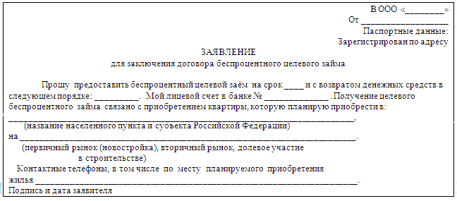 Беспроцентный целевой заем физическому лицу