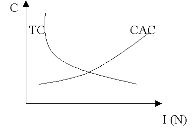 САС - это предельные издержки по созданию институтов, ТС - выражают предельную полезность институтов, выраженную через их альтернативную стоимость в форме трансакционных издержек.