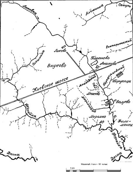 Бассейн р. Ликовки (со старой топографической карты, Киевское шоссе и поворот на Внуково перенесены с новой карты).